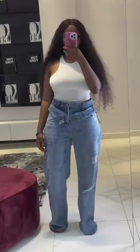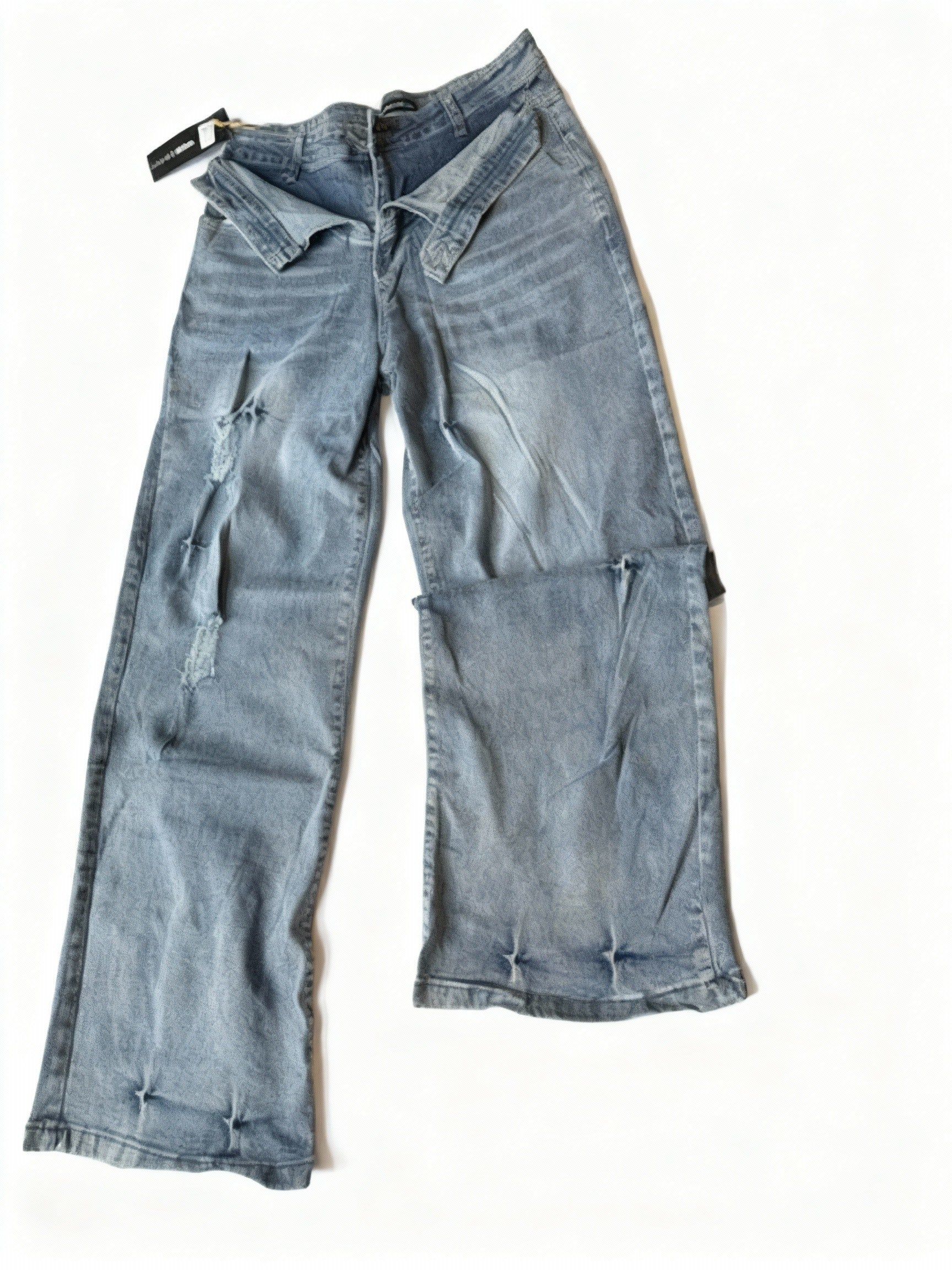 Turn heads with these unique double-waistband jeans a trendy twist on classic denim! Designed for a bold, fashion-forward look, these jeans feature a relaxed wide-leg fit and subtle distressed details perfect for street style lovers.